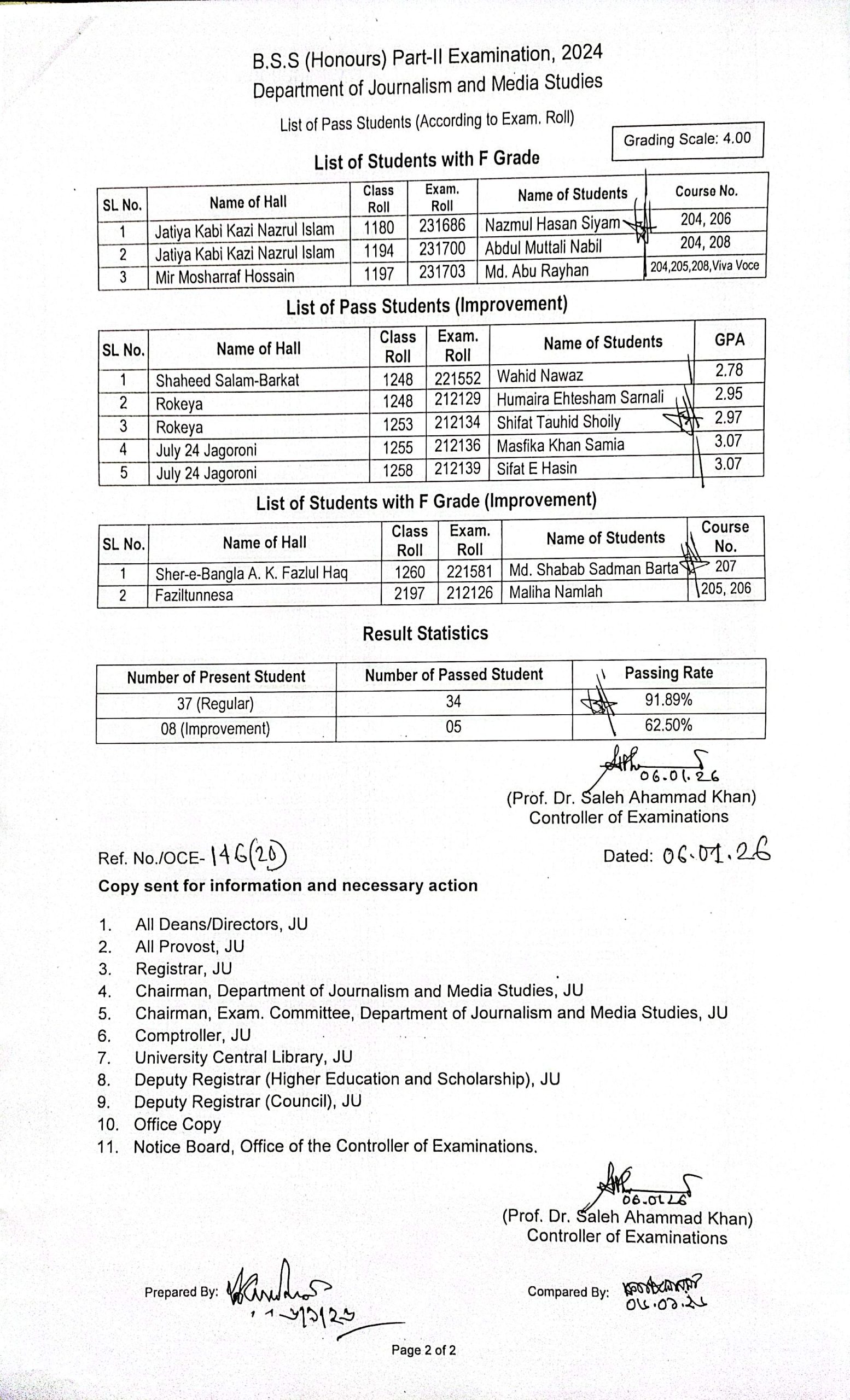 Home > Latest Update > Result of BSS (Hons) Part-II Examination 2024